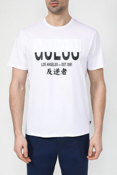 Хлопковая футболка с принтом Guess 5459119 (белый, lpn28483767)