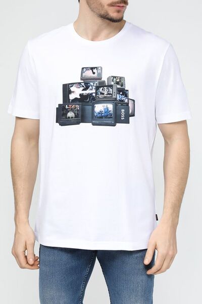 Футболка хлопковая с принтом Boss by Hugo Boss 5884099 (белый, lpn28484438)