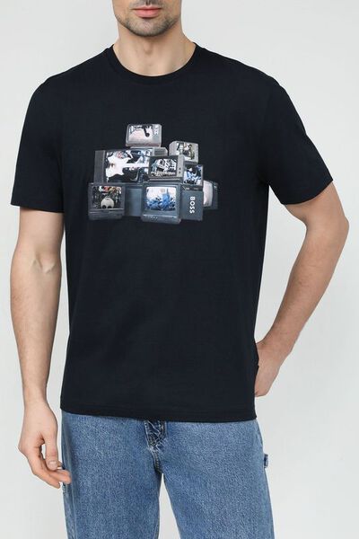 Футболка хлопковая с принтом Boss by Hugo Boss 5884102 (синий, lpn28484468)