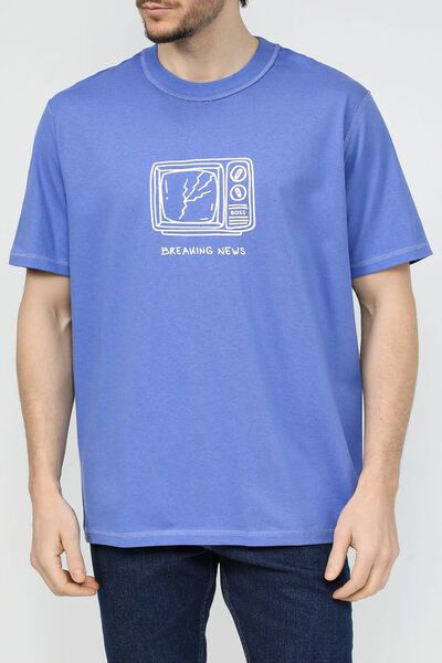 Футболка хлопковая с принтом Boss by Hugo Boss 5885065 (голубой, lpn28484472)