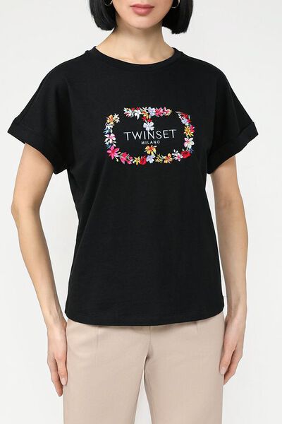 Хлопковая футболка с принтом Twin-Set 5903611 Twin-Set (чёрный, lpn28484601)