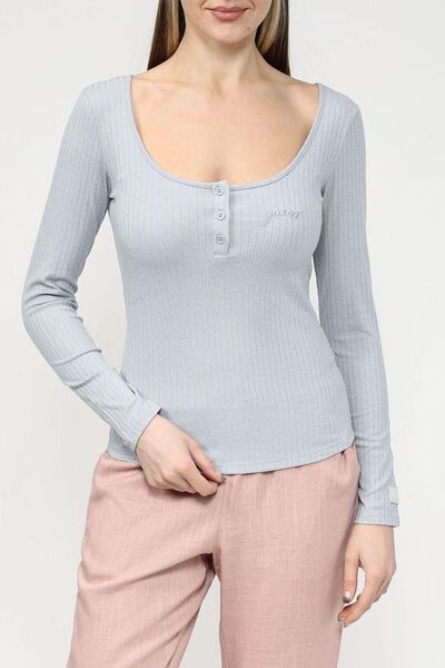 Лонгслив с вырезом на пуговицах Guess 6079514 (серый, lpn28485337)