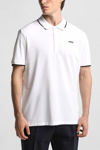 Поло хлопковое с контрастными деталями Hugo 6205447 (белый, lpn28486438)