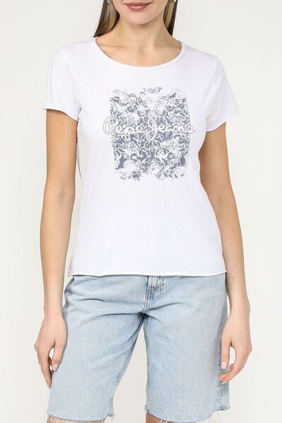 Футболка хлопковая с принтом Pepe Jeans 6216232 (белый, lpn28486621)