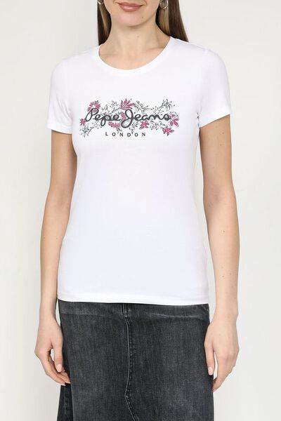Футболка хлопковая с принтом Pepe Jeans 6216259 (белый, lpn28486694)