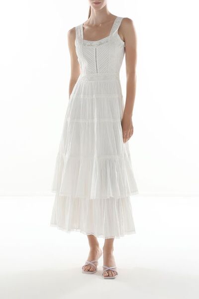 Платье-сарафан с воланами с кружевом Twin-Set 6226327 Twin-Set (белый, lpn28486761)