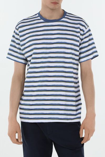 Футболка хлопковая в полоску Bomboogie 6368704 (синий, lpn28487557)