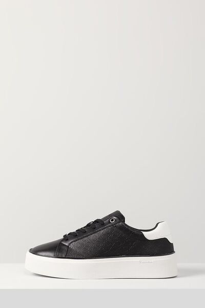 Кеды кожаные с монограммой логотипа бренда Calvin Klein 6385036 (чёрный, lpn28487628)