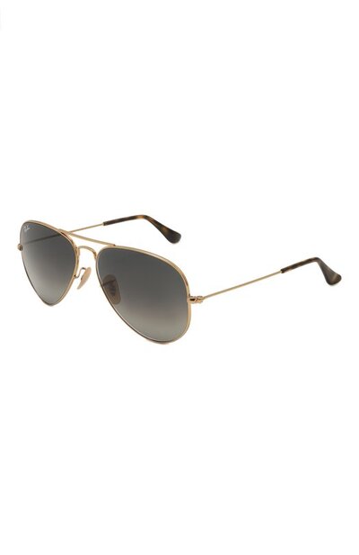 Оправу солнцезащитных очков Aviator Classic выполнили из металла с золотистым финишем, а для заушников использовали черепаховый ацетат. Модель с двойным мостом дополнили затемненными градиентными линзами.