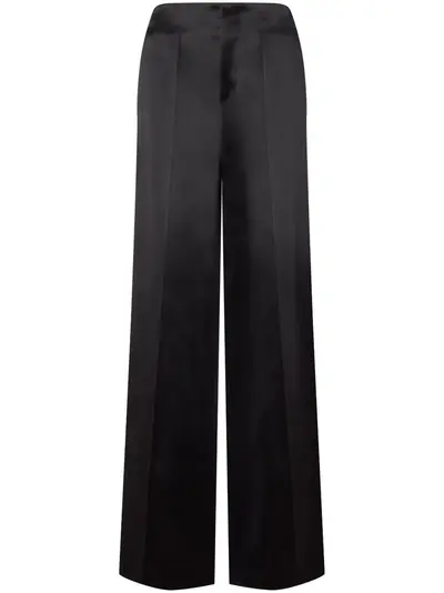 black satin finish concealed front fastening two side slit pockets wide leg