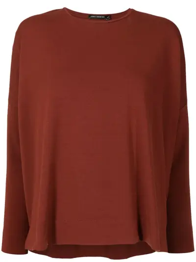 cinnamon brown scoop neck drop shoulder long sleeves straight hem