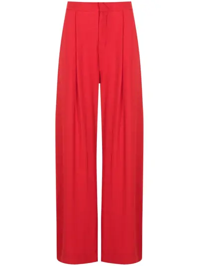 red crepe texture high-waisted concealed front fastening pleat detailing side zip fastening wide leg