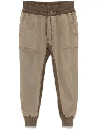 peanut brown elasticated drawstring waistband two side slash pockets two rear flap pockets ribbed ankles