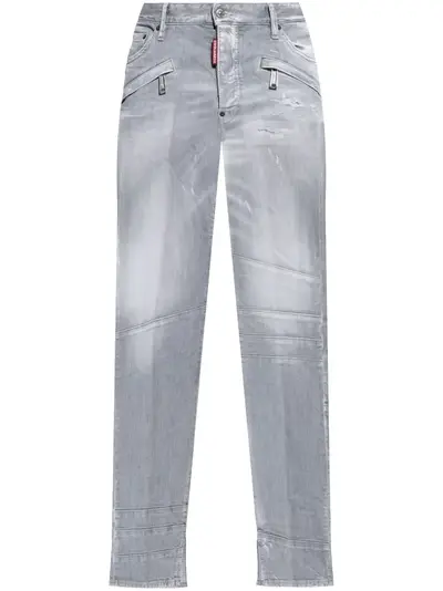 light grey concealed fly and button fastening classic five pockets two side zip-fastening pockets belt loops