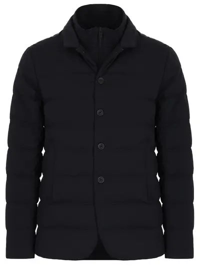 -Черный легкий стеганый пуховик из влагостойкой дышащей ткани от FRADI.