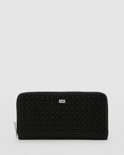 Портмоне из натуральной кожи в черном цвете от Fabi. Аксессуар выполнен из натуральной кожи с эффектом переплетения и украшен фирменным логотипом спереди. Портмоне закрывается на молнию, внутри карман на молнии для монет, два отделения для банкнот, слот для ручки и слоты для карт.