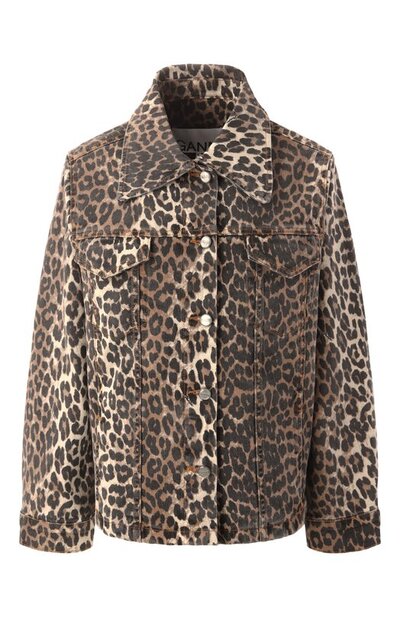 Джинсовую куртку с леопардовым принтом выполнили из органического хлопка с небольшим добавлением эластана. Изделие с двумя нагрудными и двумя боковыми карманами украсили сзади брендированным патчем. Наши стилисты предлагают создать total образ с парными джинсами и черной майкой.