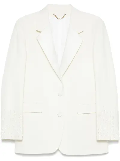 white front button fastening shoulder pads chest welt pocket two front flap pockets