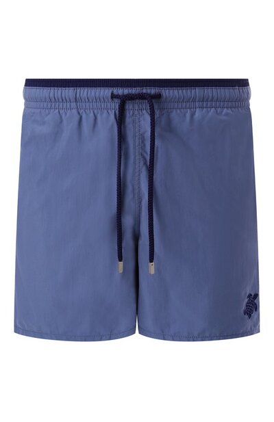 Плавки-шорты Moka из вторичного нейлона Econyl украшены слева вышивкой в виде фирменной черепахи. Эластичный пояс-кулиска подчеркнут темной вставкой и брендированным патчем, под которым расположили пару люверсов. Помимо боковых карманов предусмотрели задний с клапаном на застежке велкро.