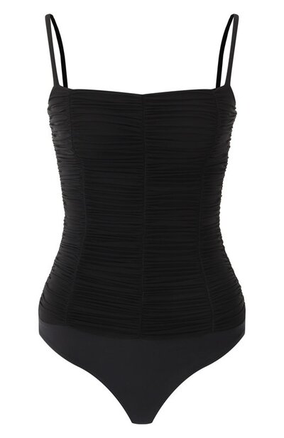 Драпированное боди Ezra найдет общий язык как с элегантной юбкой годе, так и с джинсами. На гладкой нижней части модели из эластичного вискозного джерси предусмотрели застежку на кнопки.