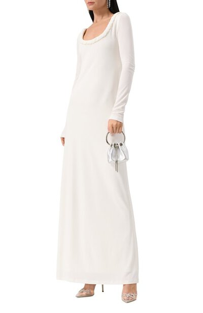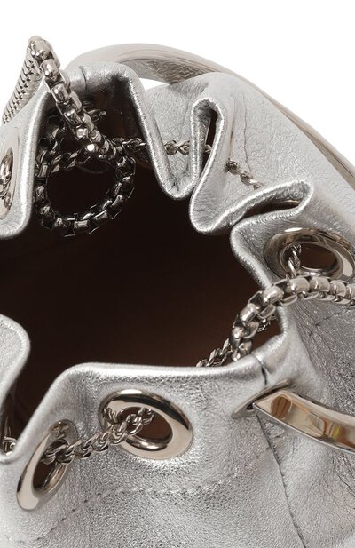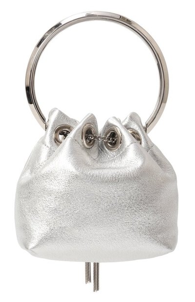 Миниатюрная сумка Bon Bon органично впишется и в дневной, и в вечерний образ. Для изготовления аксессуара Сандра Чой выбрала металлизированную мягкую наппу. Модель дополнили стилизованной под серебряный браслет ручкой-кольцом. Внутрь основного отделения, затягивающегося металлической цепочкой с кисточками, поместятся помада, ключи и зеркало.