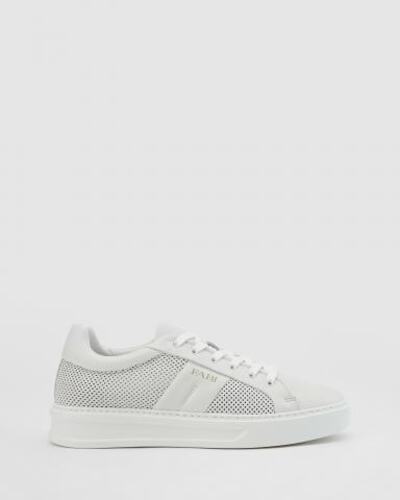 Белые кроссовки Fabi подарят комфорт во время прогулок даже в жаркие дни. Модель выполнена из перфорированной натуральной кожи, что обеспечит циркуляцию воздуха. Внутри подклад и стелька также из натуральной кожи, подошва – из резины. Дизайн завершает изображение наименования бренда сбоку и эмблемы на язычке. Кроссовки легко сочетать с повседневными брюками, джинсами и шортами.