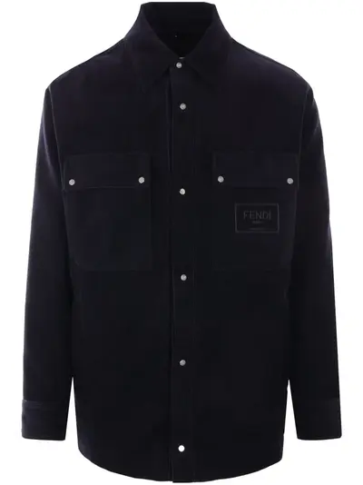 navy blue front press-stud fastening two chest flap pockets buttoned-cuff sleeves curved hem