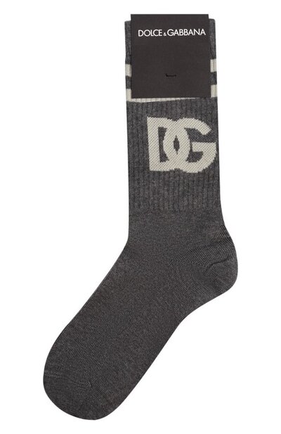 Носки с крупной монограммой DG вошли в коллекцию DNA. Фирменная символика перекликается с двумя полосами на широкой резинке. Модель выполнили из эластичного хлопка.