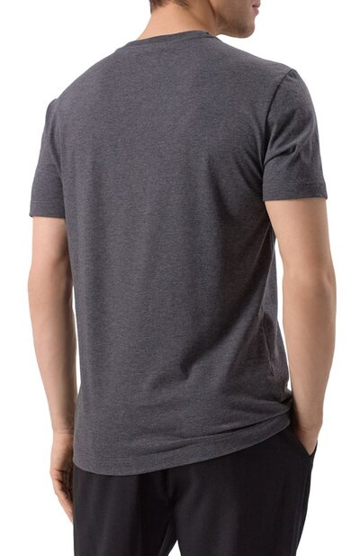 Футболку из хлопкового джерси украсили спереди контрастным логотипом, а на неглубокой круглой горловине в рубчик закрепили фирменную бирку. Изделие гармонично впишется в базовый гардероб.