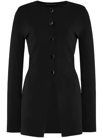 black front button fastening crew neck front slit