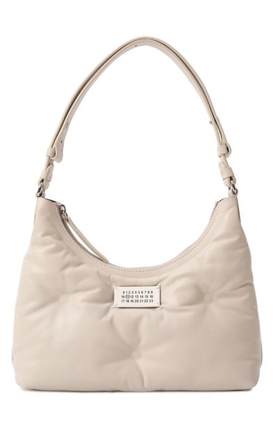 Стеганую сумку-хобо Glam Slam с регулируемой ручкой изготовили из мягкой наппы. Аксессуар и внутренний карман застегиваются молниями. На принадлежность марке указывает патч с числовой эмблемой спереди.