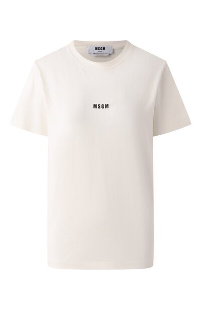Для пошива футболки с круглым вырезом использовали хлопковое джерси. Спереди модель украсили небольшим контрастным логотипом бренда.