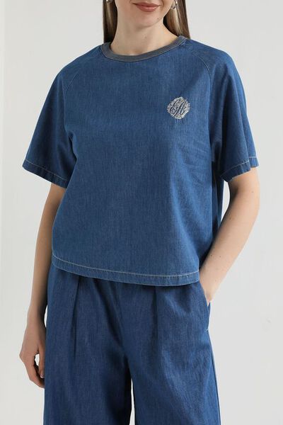 Футболка джинсовая с логотипом Emporio Armani 5259646 (синий, lpn28936804)