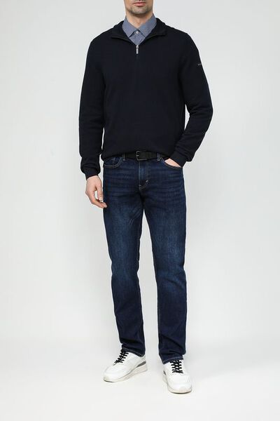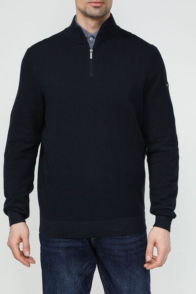 Пуловер хлопковый с воротником на молнии Bugatti 5320702 (синий, lpn28936819)