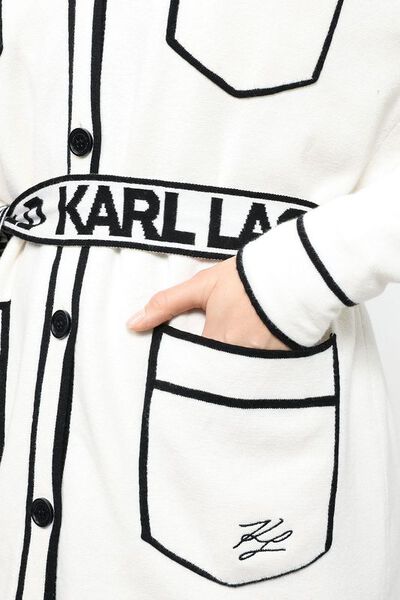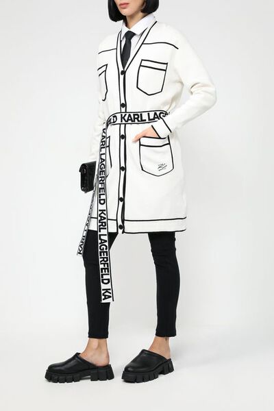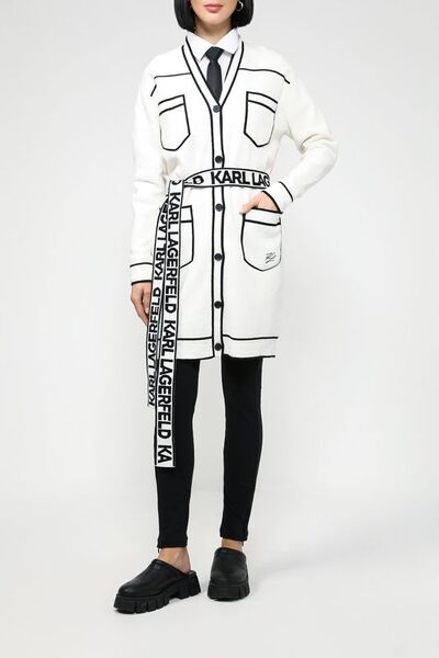 Хлопковый кардиган с поясом c логотипом Karl Lagerfeld 6219034 (белый, lpn28937455)
