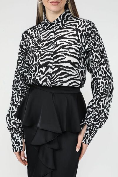 Рубашка шелковая с анималистичным принтом Karl Lagerfeld 6307555 (чёрный, lpn28937661)