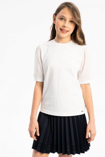 Футболка хлопковая с коротким рукавом и шитьем Junior Republic 6443611 (белый, lpn28938061)