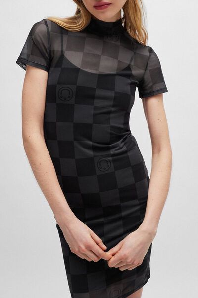 Платье из эластичной сетки с коротким рукавом Hugo 6553825 (чёрный, lpn28938492)