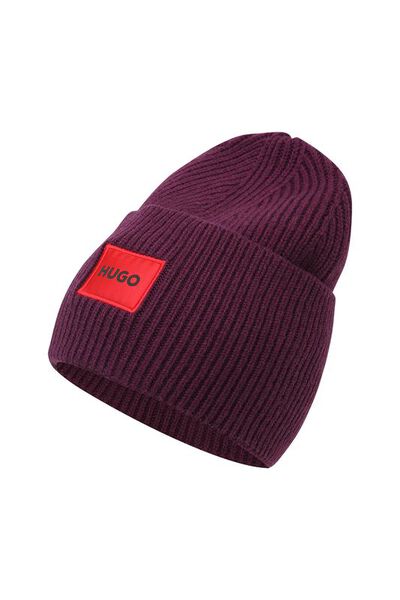 Шапка-бини шерстяная с логотипом Hugo 6606512 (фиолетовый, lpn28938780)