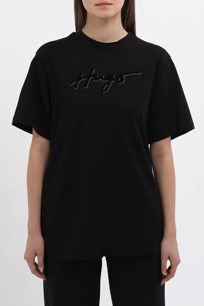 Футболка хлопковая с логотипом из страз Hugo 6606407 (чёрный, lpn28938818)