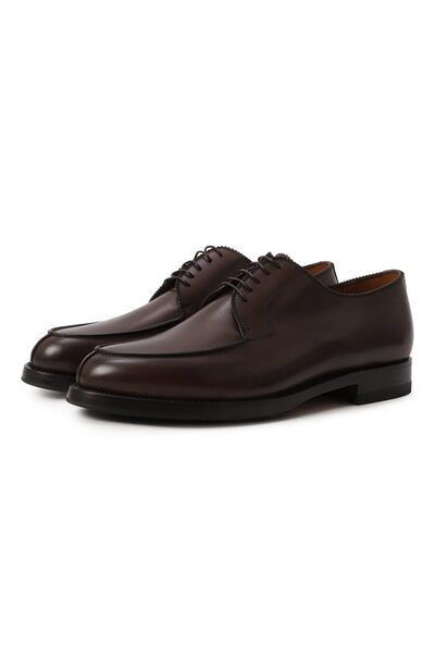 Дерби с рельефными швами на миндалевидном мысе выполнены из гладкой телячьей кожи. Верх и двухслойную подошву соединили по методу Blake Rapid, который обеспечивает гибкую и прочную конструкцию.