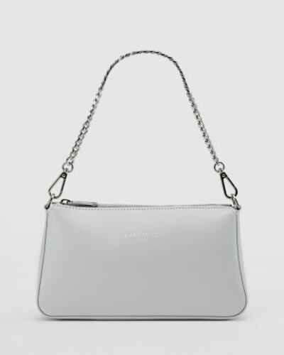 Сумка Lancaster из натуральной кожи в сером цвете. Модель с ручкой-цепочкой и съёмным ремнём на плечо из кожи в тон, которые крепятся на карабины. Сумка закрывается на молнию, внутри текстильная подкладка и дополнительный карман на молнии. О принадлежности к бренду сообщает фирменный логотип Lancaster.