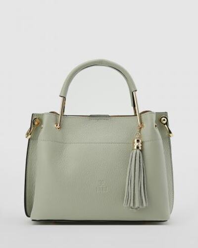 Сумка Fabi из натуральной кожи в светло-зелёном цвете. Сумка прямоугольной формы прекрасно подойдёт как для повседневных, так и для более официальных образов. У сумки металлические ручки с кожаными вставками и съёмный ремень на плечо на карабинах. Единственное отделение закрывается на молнию, внутри карман на молнии. Сумку украшает изящный брелок в виде кисточки из кожи.
