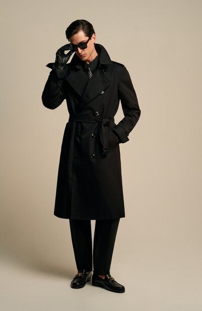 Тренч Kensington из коллекции Heritage выполнили из водоотталкивающего хлопкового габардина. Модель с подкладкой в фирменную клетку дополнили отстегивающимися погонами, шлицей сзади, карманом внутри и двумя снаружи. Для отделки пряжек на съемных патах и поясе использовали телячью кожу.