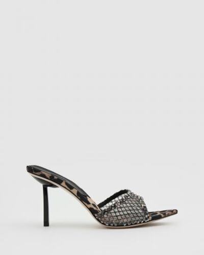 Босоножки Le Silla из текстильной сетки в цвете леопард. Пара с изящным и смелым дизайном станет украшением вашего гардероба. Верх покрыт сетчатой тканью, усыпанной кристаллами. Тонкий каблук-шпилька высотой 80 мм и зауженный силуэт завершают дизайн пары.