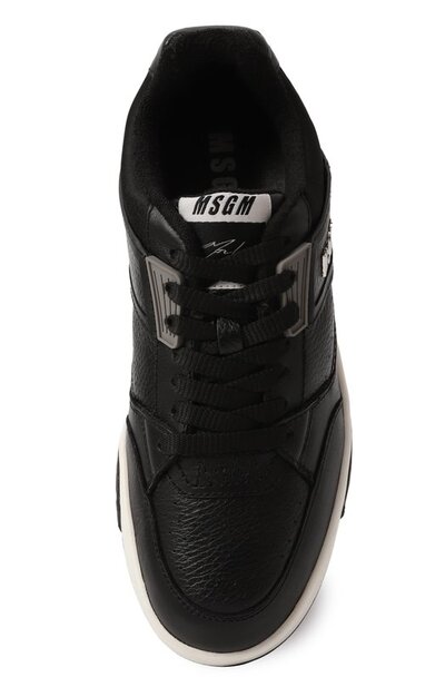 Для пошива кедов с фирменным логотипом сбоку и перфорацией на мысе использовали зернистую и гладкую кожу, а также полимер. Контрастную брендированную нашивку на язычке поддерживает широкая двухцветная подошва.