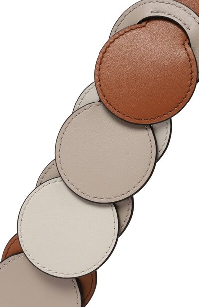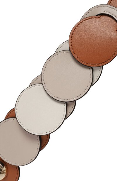 Ремень Furla Sfera получил свое название от брендированной полусферы, которая украшает один из концов. Аксессуар из телячьей кожи Roma крепится к сумке карабинами.