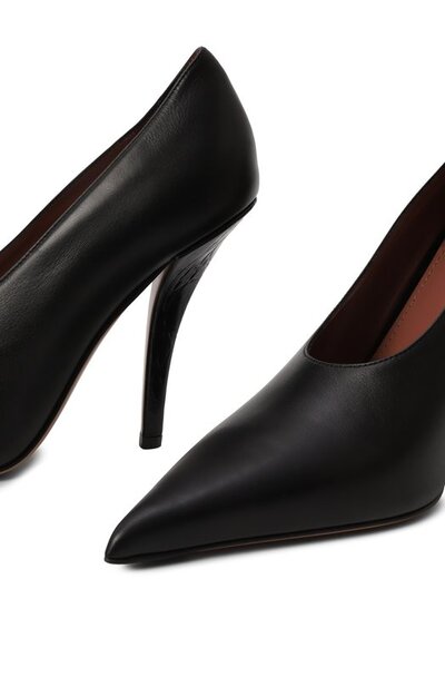 Туфли Jessica с зауженным мысом изготовили из гладкой телячьей кожи. Модель установили на высокую шпильку, обтянутую таким же тисненым материалом.