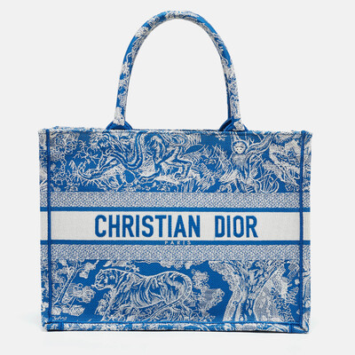 Dior Blue/White Embroidered Toile de Jouy Canvas Medium Book Tote 1092525 (голубой, lpn29014517)