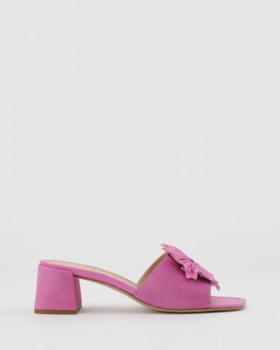 Босоножки Baldinini из натуральной замши в розовом цвете. Розовые босоножки без застёжек станут яркой деталью в летнем гардеробе. Модель выполнена из натуральной замшевой кожи, на устойчивом каблуке высотой 60 мм. Подклад и стелька выполнены из кожи. Акцентом дизайна служит декор из замши в виде цветка. Босоножки легко сочетать как с женственными образами с платьями, так и с более повседневными — с шортами и лёгкими брюками.